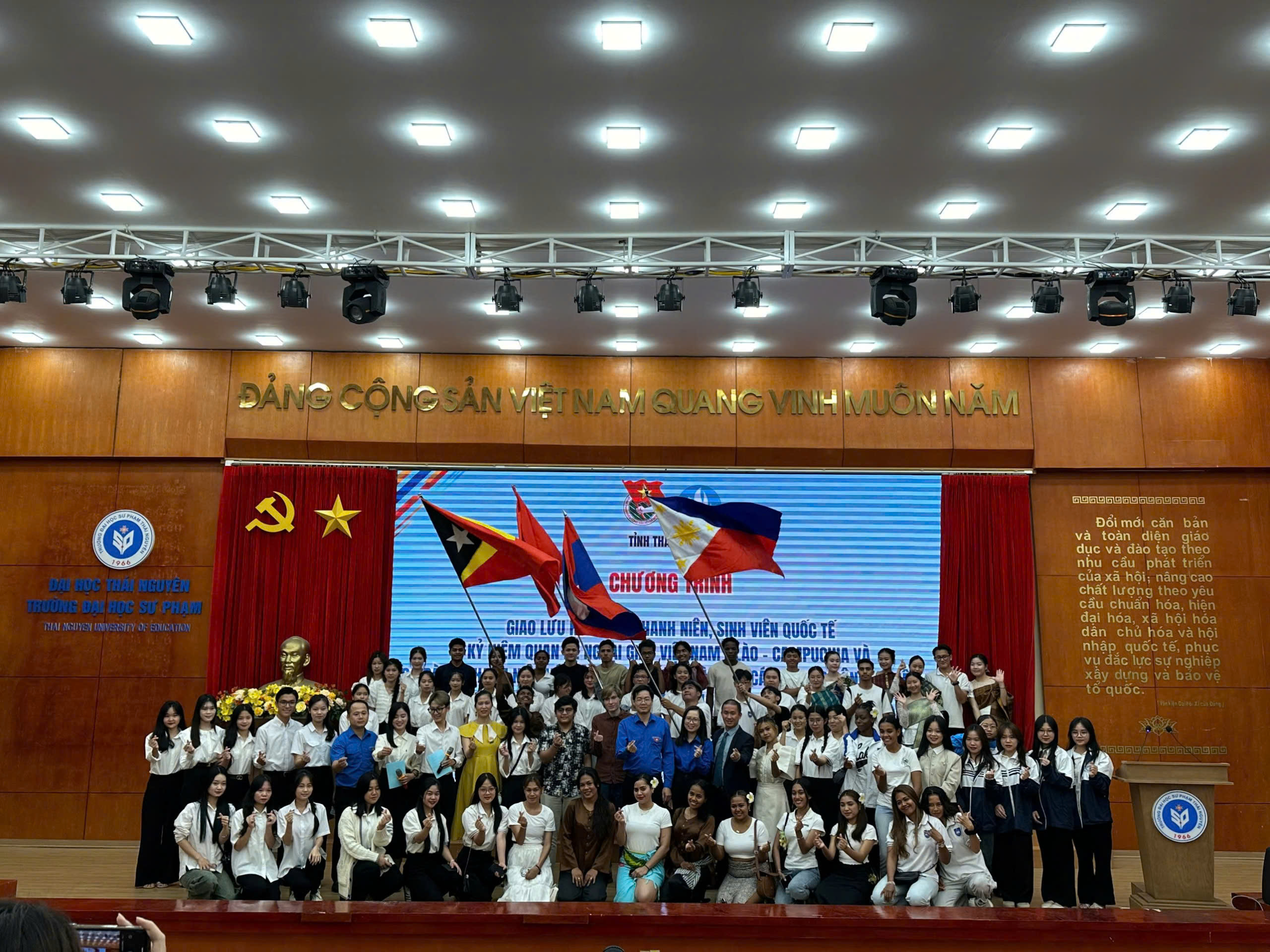 Ngày 22/10, tại Trường Đại học sư phạm - Đại học Thái Nguyên, Tỉnh đoàn - Hội LHTN - Hội sinh viên tỉnh tổ chức chương trình Giao lưu hữu nghị thanh niên, sinh viên quốc tế kỷ niệm quan hệ ngoại giao giữa Việt Nam - Lào - Camphuchia và Tọa đàm "Thanh niên với hội nhập quốc tế và cuộc cách mạng công nghiệp 4.0