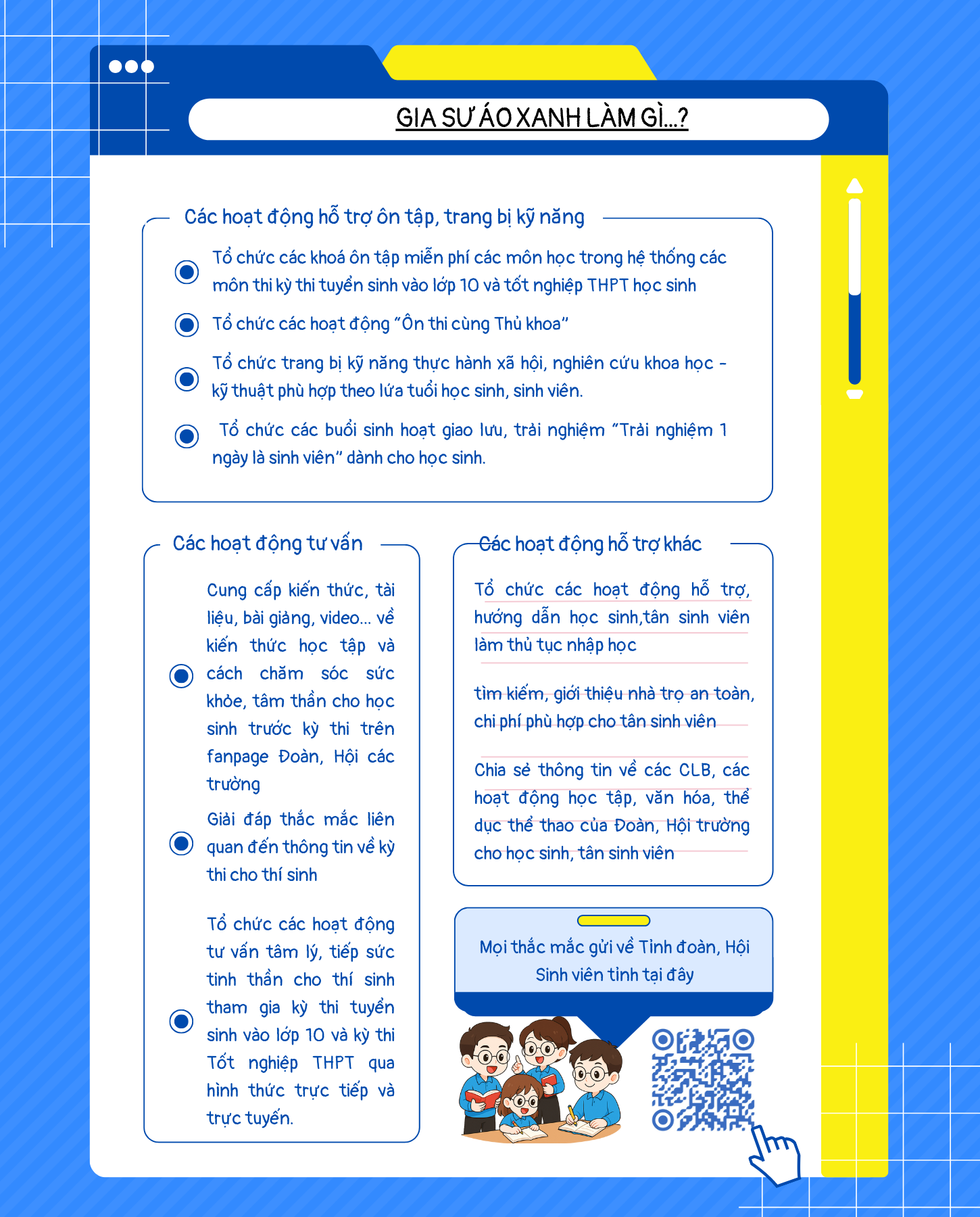 TRIỂN KHAI CÁC ĐỘI HÌNH “GIA SƯ ÁO XANH” HỖ TRỢ ÔN TẬP, TƯ VẤN TRỰC TUYẾN CHO HỌC SINH, SINH VIÊN