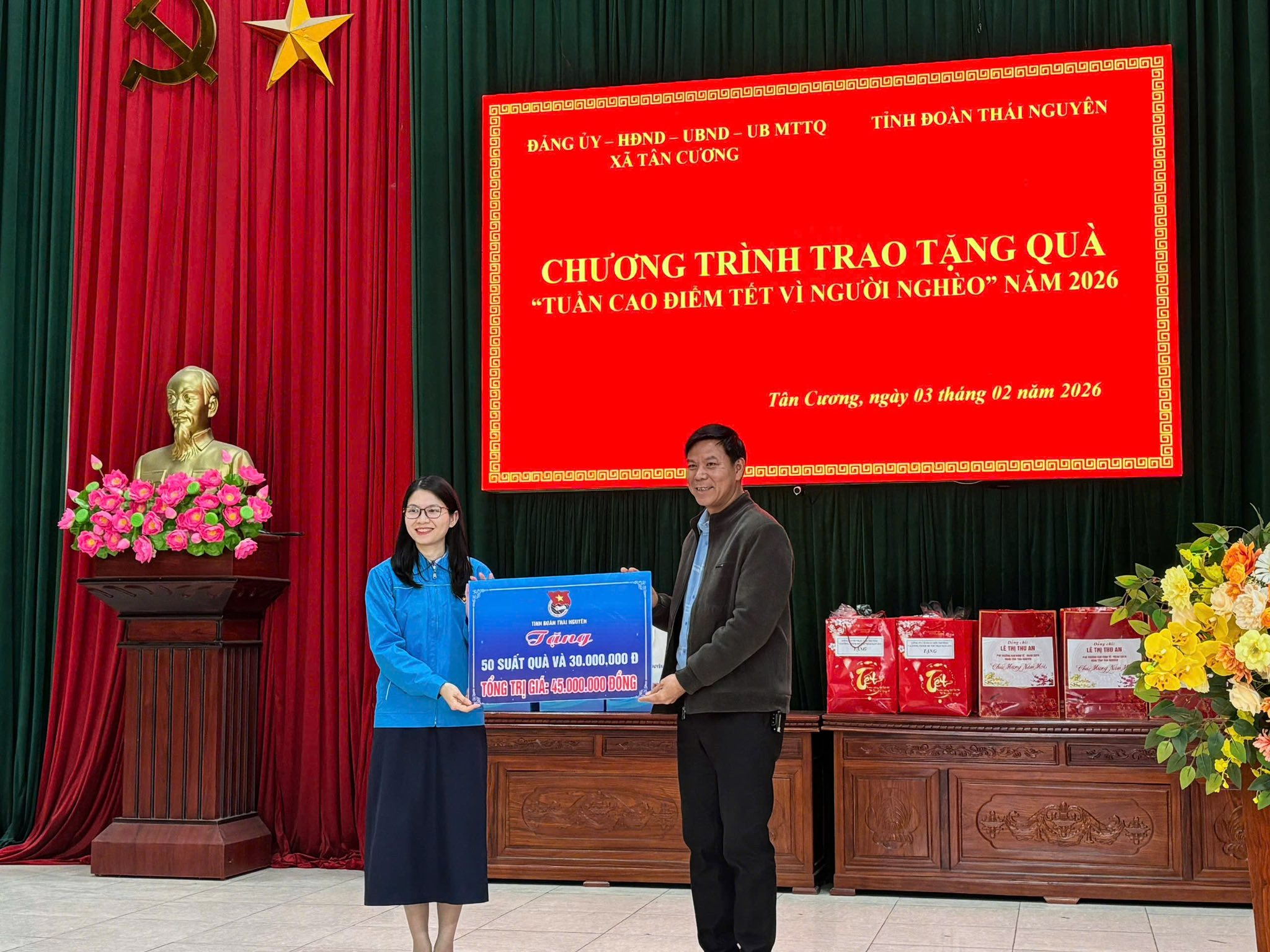 TỈNH ĐOÀN THÁI NGUYÊN TRAO TẶNG QUÀ TẾT VÌ NGƯỜI NGHÈO XUÂN BÍNH NGỌ NĂM 2026 TẠI XÃ TÂN CƯƠNG